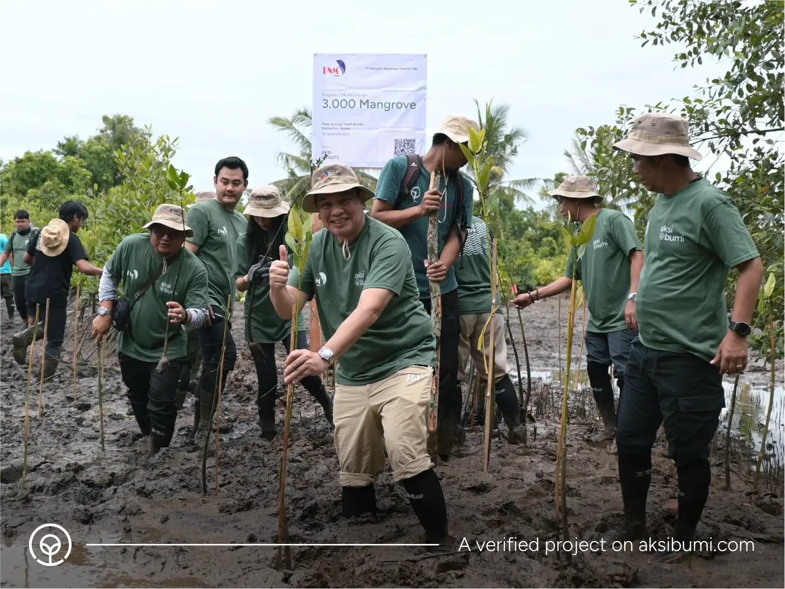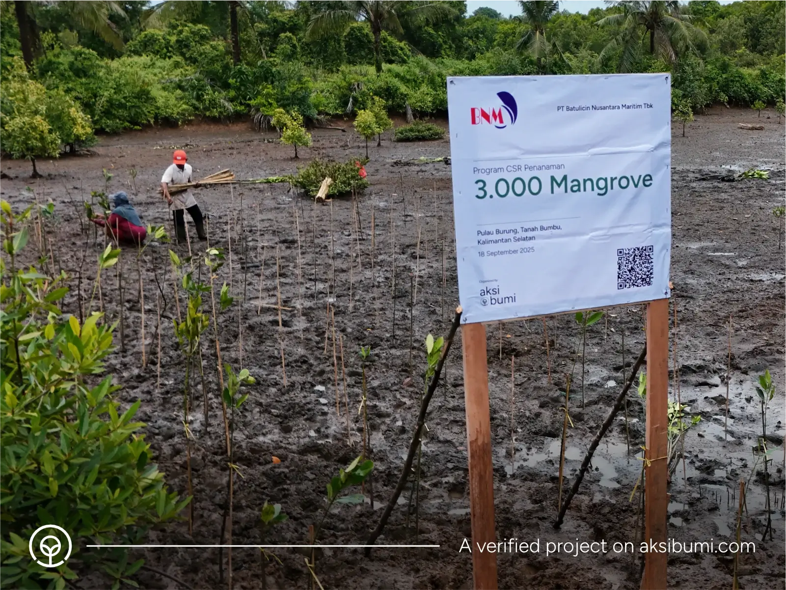 Melalui aksi ini dilakukan kolaborasi penanaman pohon Mangrove oleh PT Batulicin Nusantara Maritim Tbk sebagai kontributor. Sebagai perusahaan jasa transportasi laut yang berlokasi di Batulicin, Tanah Bumbu, Kalimantan Selatan, aksi keberlanjutan yang sejalan dengan SDG 13 dan SDG 15 ini menjadi bentuk tanggung jawab sosial lingkungan (CSR) perusahaan dalam membantu mengatasi kondisi ekologis dari aktivitas tambang termasuk abrasi di Kalimantan Selatan. Mempertimbangkan kondisi geografis area tanam, bersama petani mangrove lokal penanaman mangrove dilakukan dengan metode ajir untuk mendapatkan survival rate terbaik.
